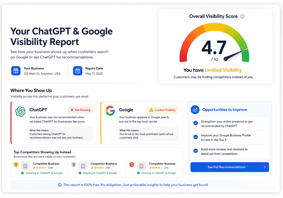 ChatGPT and Google Visibility Report for Local Businesses